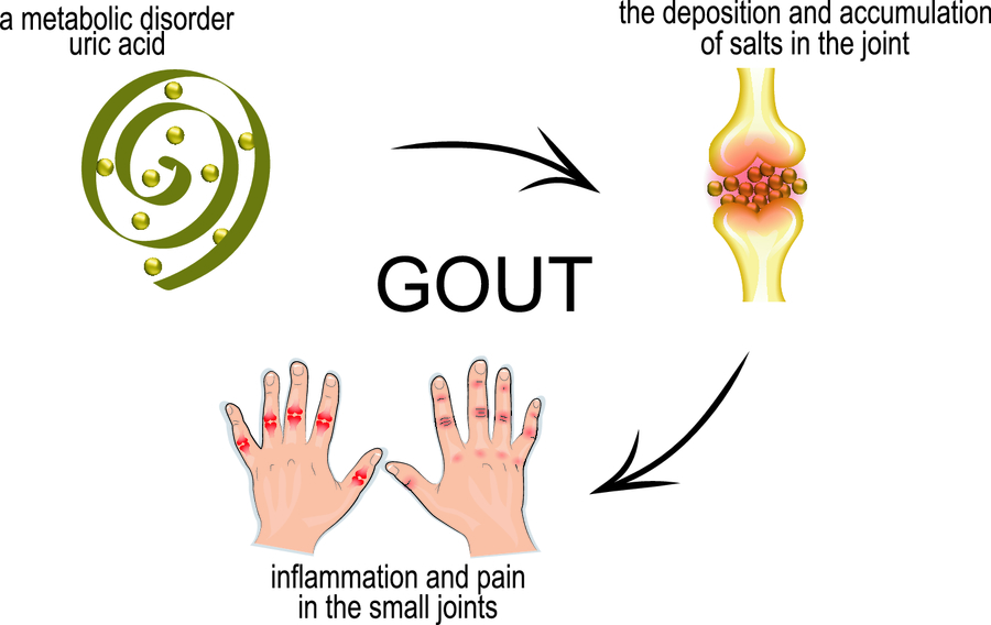 Подагра возникает из-за нарушения обмена в организме мочевой кислоты.
