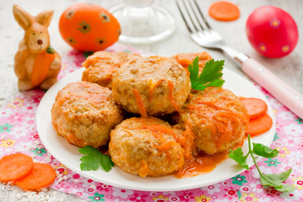 Можно готовить для обеда мясные блюда из фарша крольчатины, телятины, индейки, нежирной свинины, курицы, говядины, субпродуктов. Из мясного фарша можно приготовить ребенку паровые котлетки, тефтели, фрикадельки, суфле. Мясо дают на обед ежедневно (кроме «рыбных» дней). Можно использовать готовое мясное детское питание. Объем дневной порции составляет 100 г.