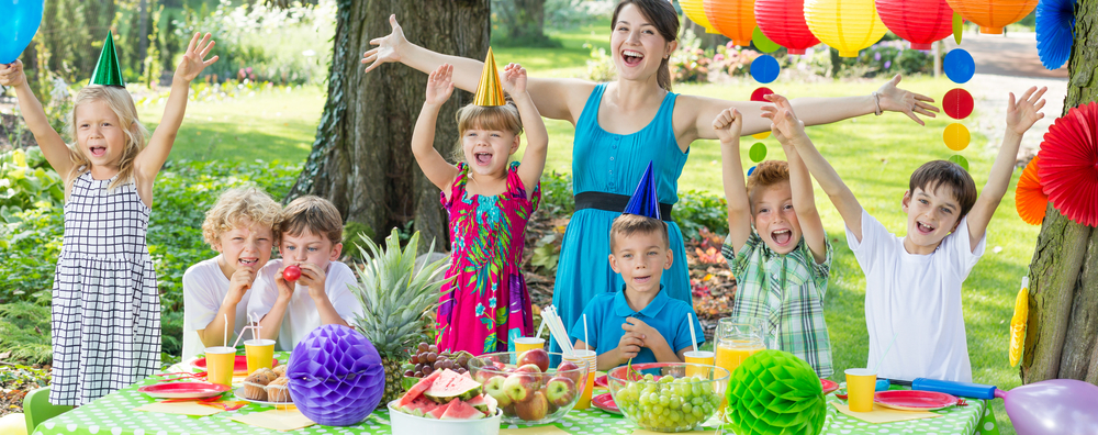 Проводить праздник можно дома или на природе. Для угощения гостей можно использовать одноразовую посуду ярких расцветок или с картинками, изображающими героев мультфильмов; трубочки для напитков; пригодится и большое количество бумажных ярких салфеток. Все это поможет украсить праздничный стол.