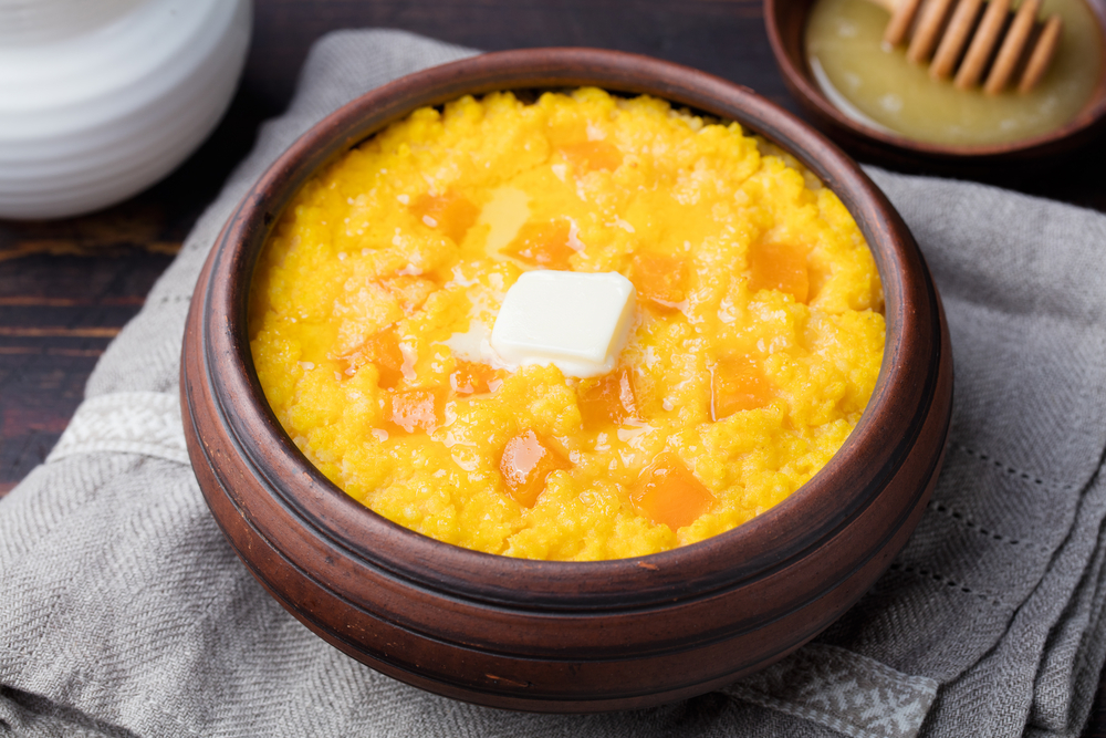 На 1 единицу крупы берутся 2 единицы воды и 2 молока. Крупа заливается водой и варится при постоянном помешивании минут 20–30. Затем, когда вода выкипит, густая каша начнет булькать, вливается молоко, отключать кашу можно после закипания. В конце можно добавить соль, масло и сахар. Каша должна настаиваться после варки не менее 10 минут. Кукурузная каша сочетается с сухофруктами, тертым свежим яблоком, консервированными персиками, ананасами.
